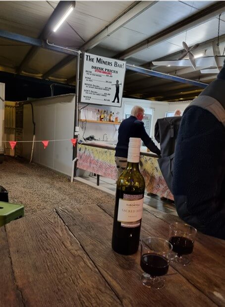 일 년 중 가장 많은 사람들이 요와에 모이는 시기에 바(Bar)도 열립니다. 호주에서 알콜 라이센스는 비싼 세금을 물어야하기 때문에 이곳은 일정기간만 사용하는 임시 라이센스를 발급받아 축제를 앞두고 바(Bar)를 오픈한다고 합니다. 낮에 만난 앤디가 알려준 덕분에 저녁에 바에 놀러갔습니다. 오픈 첫날이라 지역주민들 뿐만 아니라 캠핑장에서 많은 사람들이 찾아왔습니다. 이런 모든 것들이 지역공동체에서 함께 운영하고 있습니다. 이름도 재미있게 헝그리 마이너를 위한 식당과 바입니다.