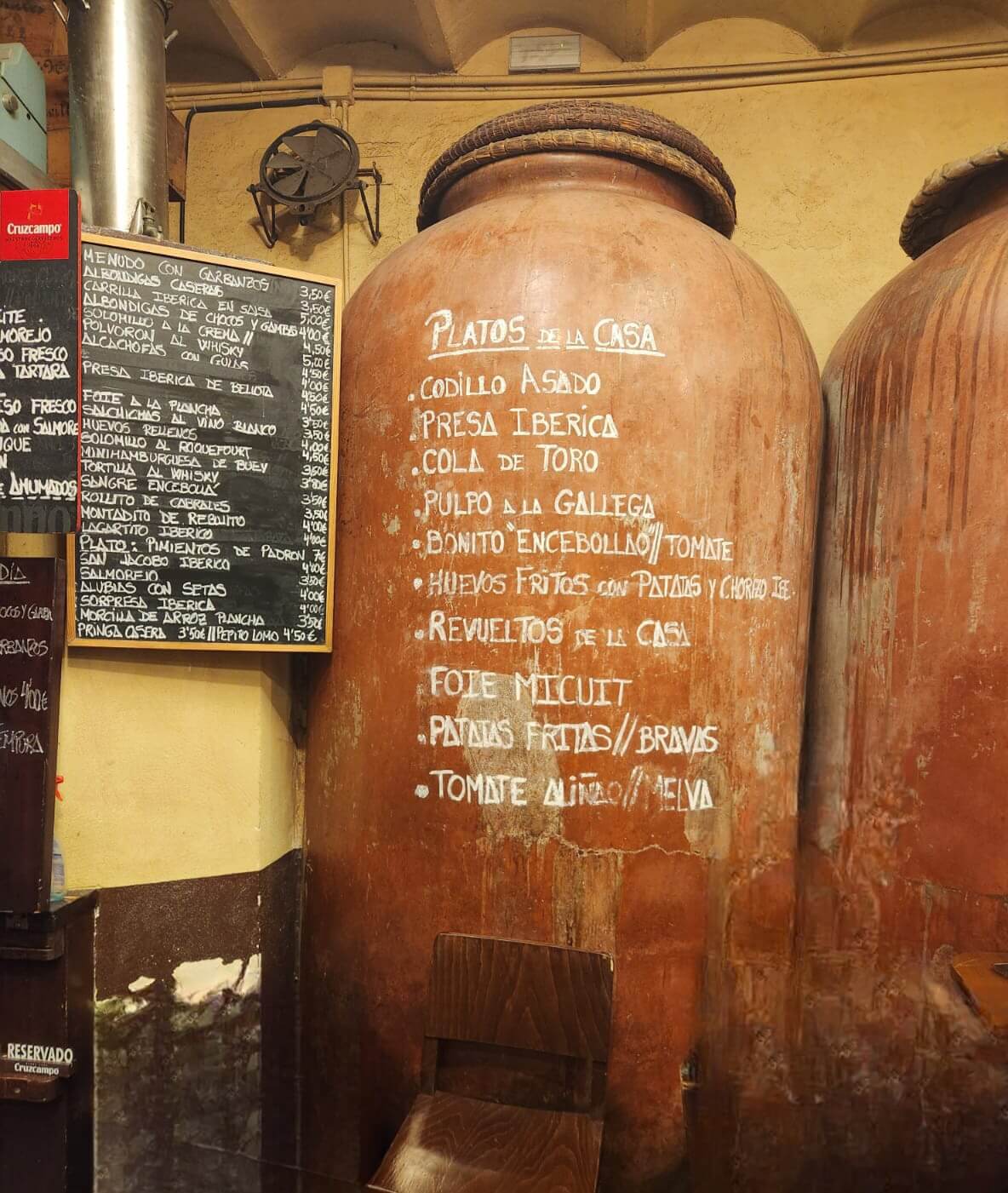 그곳은 1860년대에 문을 연 세비야의 오래된 보데가 중의 한곳으로 특이하게도 와인을 저장하던 대형 단지가 줄지어 서있는 곳입니다. 처음에 그 단지의 용도를 몰라 서빙하는 직원에게 물어보았는데 옆 테이블에 있던 사람이 와인 저장고였다고 친절히 설명해주며 대화가 시작되었습니다.