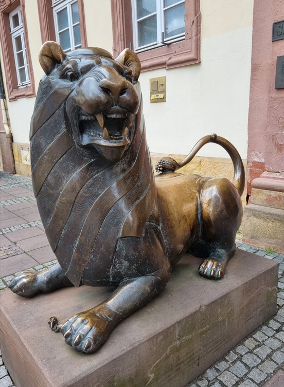 동네 구경을 시작하기 전, 카페 맞은편에 있는 시청 건물 앞을 서있는 사자 동상과 대면했습니다. 준엄한 표정을 한 사자의 발아래에서 놀고 있는 생쥐와 그런 사자의 꼬리를 기어오르는 달팽이가 인상적입니다. 그리고 사자의 꼬리 끝에 올려진 포도 한 송이가 이곳이 와인산지임을 나타내고 있습니다. 동상 하나에도 세심함이 담겨 재미를 더해줍니다. 사자가 지키고 있는 시청건물 안쪽도 들어가 보았습니다. 인상 깊은 동상이 중앙에 서있고 조용한 관공서 이미지가 풍깁니다.