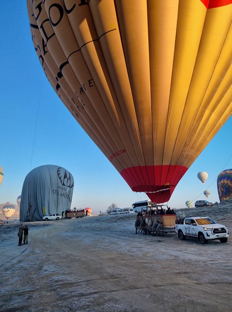카파도키아에 도착한 바로 다음날 새벽 5시 30분에 픽업하러온 미니버스를 타고 열기구 탑승 포인트로 이동했습니다. 우리가 도착하기 전 이틀 동안 날씨가 좋지 않아 열기구가 날지 못했다고 합니다. 시작부터 좋은 예감이 들었던 그날의 모든 일정이 성공적이었습니다.
