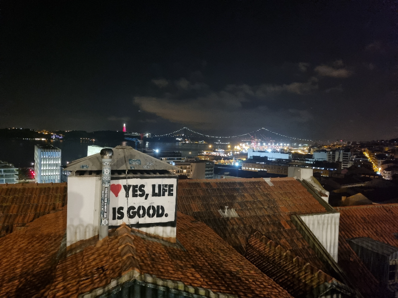 리스본은 언덕의 도시입니다. 멋진 풍경은 옵션이 아니라 필수입니다. 어느 곳에서나 조금만 돌아보면 어디나 전망대입니다. 포르투갈 어로 Miradouro 라고 표기된 곳들이 전망대입니다. 우리가 묵었던 숙소 근처에서 우연히 만난 산타카타리나 전망대는 낮에도 밤에도 멋진 경치를 자랑하는데 특히 밤에 젊은이들이 작은 광장을 가득 메웁니다.