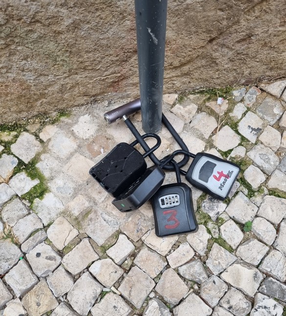 좀 더 나은 시스템은 입구에서 받은 핀코드를 사용해 자동으로 문을 여는 곳도 있지만 대부분은 열쇠를 이용하는 것 같습니다. 여러 층이 있다면 층마다 다른 안전박스를 사용해야 하므로 입구에 줄줄이 걸어두거나 심지어 바닥에 놓여있는 경우도 있습니다. 해당 층이나 호수를 찾아서 들어가시면 됩니다.