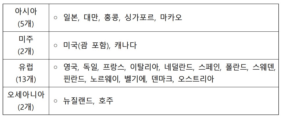 K-ETA 신청 가능 국가 및 지역(112개) (2024.1월 기준)