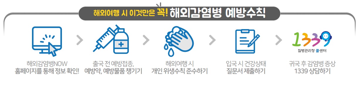 - 해외여행을 떠나기전에 반드시 해당국가의 감염병 상황을 확인하고