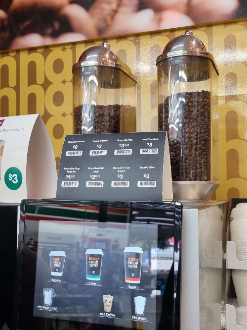 호주엔 유독 세븐일레븐 편의점이 많습니다. 세븐일레븐의 커피머신을 소개합니다. 낙농업이 성한 나라다보니 우유는 원하는 만큼 얼마든지 제공되고 커피 사이즈로만 가격이 책정됩니다. 아메리카노든 라떼든 가격이 동일한데 레귤러 $2, 라지 $3의 저렴한 가격이 강점입니다.
