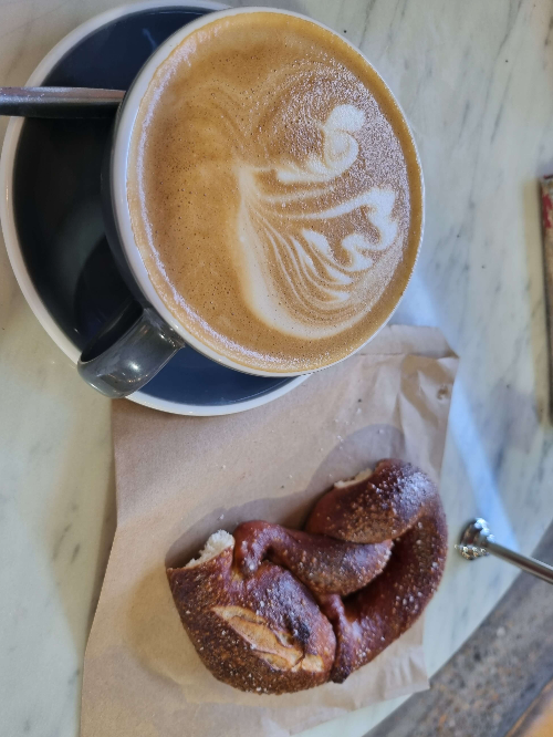 여러 곳에 브랜치를 두고 있는 베이커리 카페인데 우리가 간 곳은 울룽가바에 있는 곳으로 식사빵으로 먹는 사워도어를 사기 위해 가끔 들립니다. 독일인인 친구는 빵의 기준이 까다롭습니다. 독일이 아닌 호주에서 프레첼은 이곳에서만 먹었던 것 같습니다.
